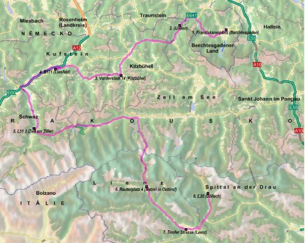 2. Den – trasa alpami dále do Tyrolska přes Zillertal, vysokohorskou silnici
