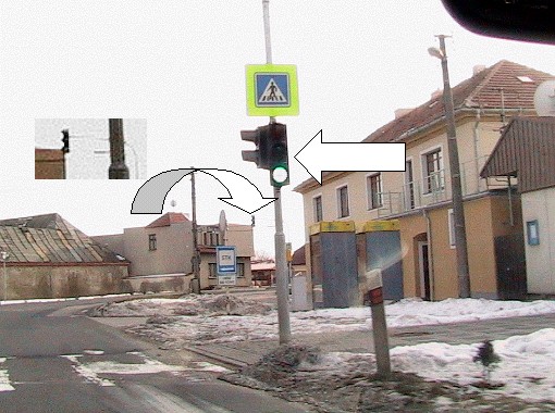 vidět, že lampa se značkou je umístěna v křižovatce (při troše dobré vůle by se